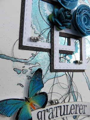 trykket kortet ned i malingen. Vannet gjør at sølvet samler seg litt,